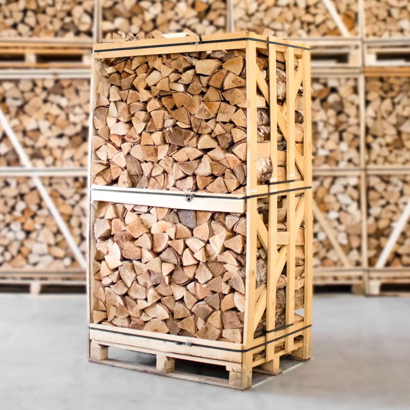 Elke pallet bevat circa 800 kg berkenhout, met een geschatte stookwaarde van 3.000–3.500 kWh. Dat betekent dat je, afhankelijk van het aantal stookuren per sessie, gemiddeld 3–4 maanden kunt stoken bij dagelijks gebruik. Eén blok brandt ongeveer 1 tot 1,5 uur, wat zorgt voor een efficiënte en gelijkmatige warmteafgifte.